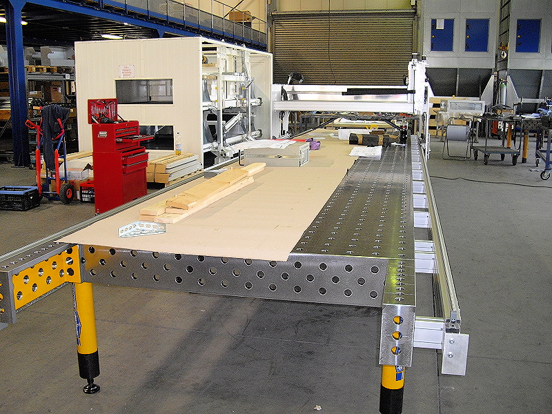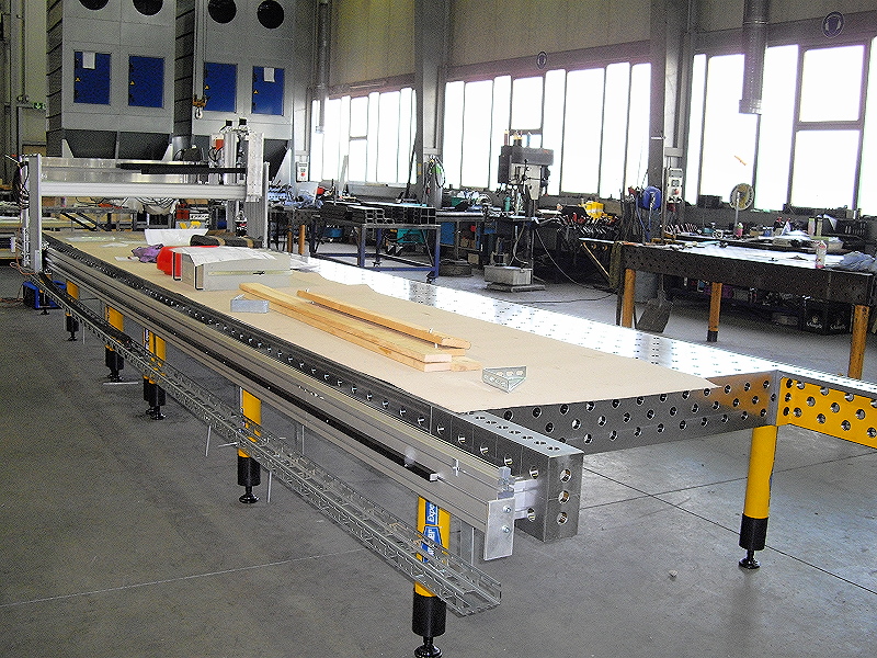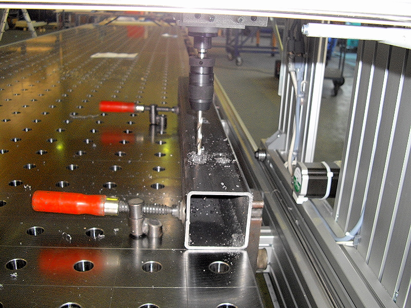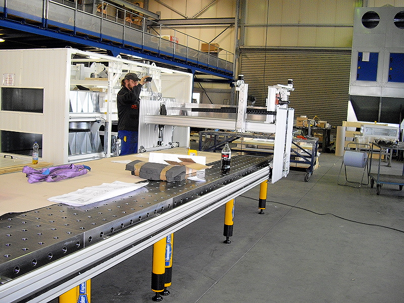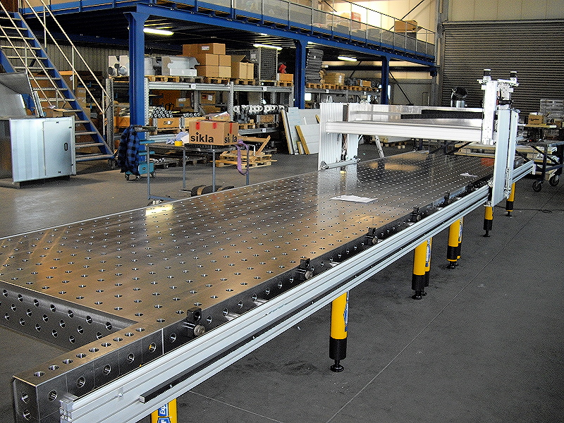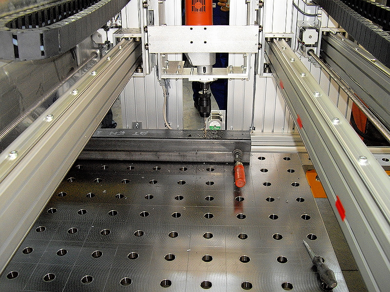 - Arbeitsbereich: 7000 x 1500 x 350mm - Vmax 200mm/s oder 6m/min - Gewicht mit Tisch ca. 6Tonnen - Steuerung 2x 4R Step - Bohrwerk von Fein läuft im “doppelten Portal” - 2te X Achse mit Aufnahme für Kressspindel